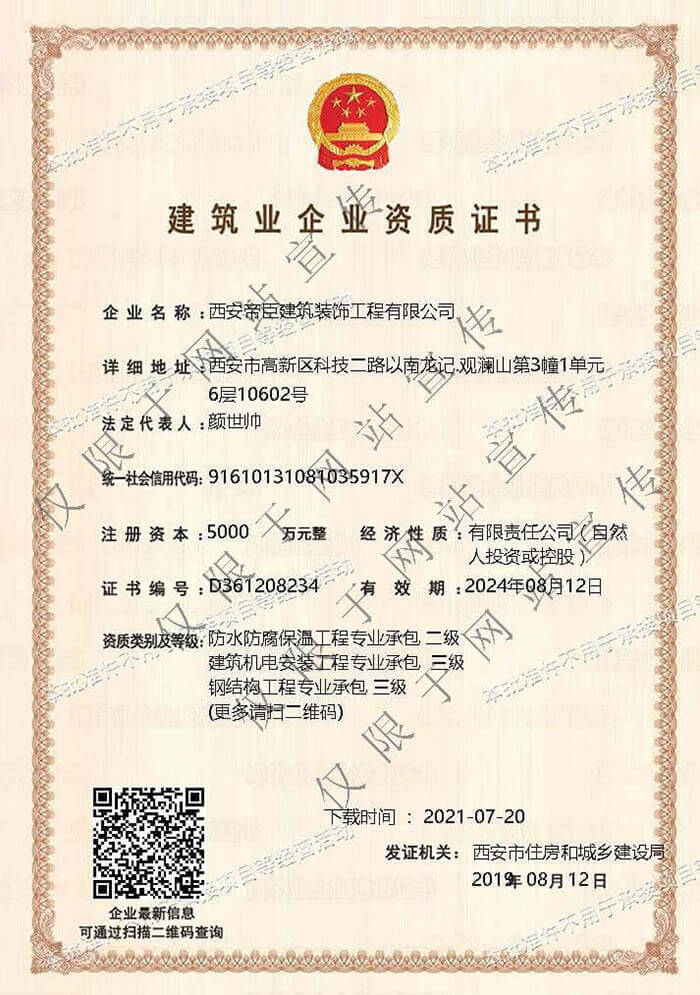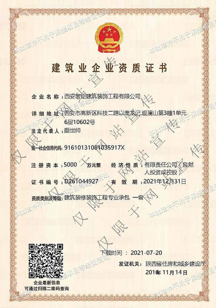 西安帝臣建筑裝飾工程有限公司于2013年注冊成立,注冊資金5000萬元。